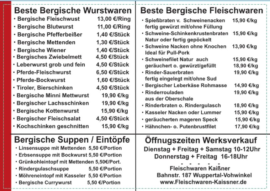 Beste Bergische Wurst und Fleischspezialitäten